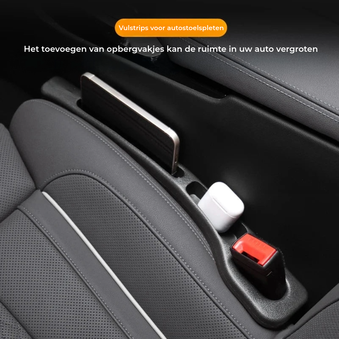 De Auto Logo Gap Filler – 2 Stuks sluit de opening tussen stoel en middenconsole volledig af, zodat u nooit meer uw sleutels, telefoon of kaarten verliest tijdens het rijden. Dit zorgt voor minder afleiding, een veiligere rit en een rustiger gevoel in de auto, zelfs in druk verkeer.