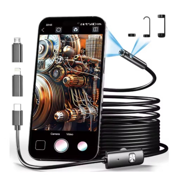 Deze endoscoopcamera laat je gemakkelijk kijken in krappe, moeilijk bereikbare plekken. Met een flexibele kabel en een heldere lens is hij ideaal voor thuisreparaties, autoonderhoud of het controleren van pijpen. Compact en eenvoudig in gebruik, helpt het je snel en nauwkeurig problemen te lokaliseren.