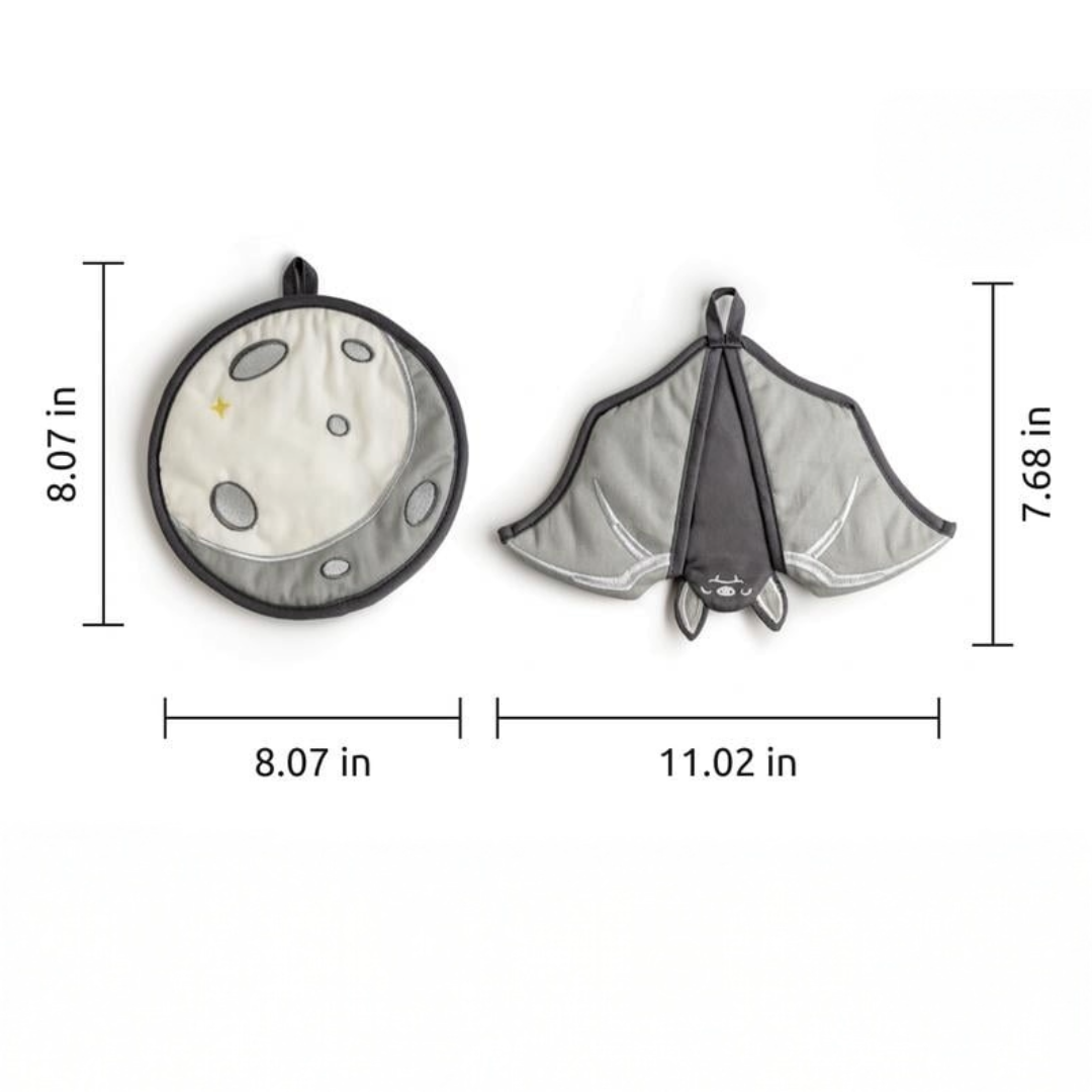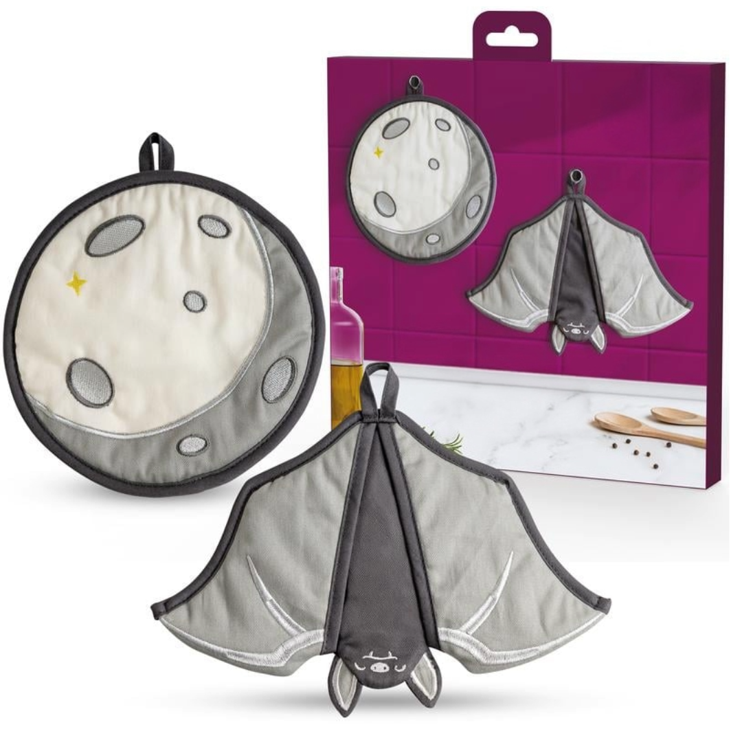 Naast de ovenwant bevat de set een maanvormige onderzetter, ideaal om hete schalen of pannen op elk oppervlak te plaatsen. Beide items hebben een ophanglus voor eenvoudige opslag. De set combineert praktisch gebruik met een charmante uitstraling, waardoor hij geschikt is voor dagelijks koken én feestelijke momenten.